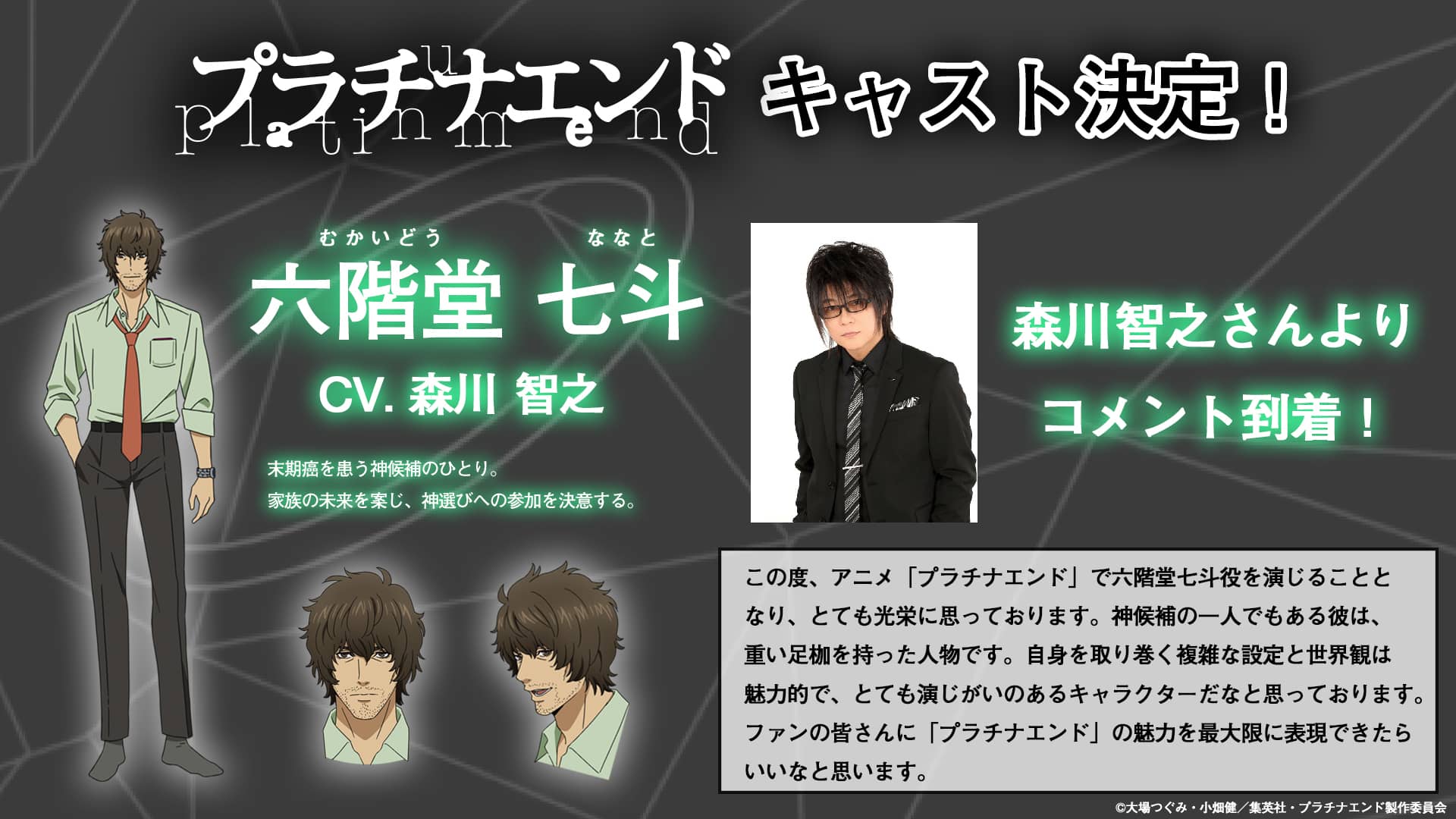 Mediante el sitio web oficial para la adaptación a anime del manga Platinum End, se ha revelado que Ai Kayano y Toshiyuki Morikawa se unieron al elenco de voz. Cabe recordar que el anime está programado para estrenarse en otoño de este 2021.