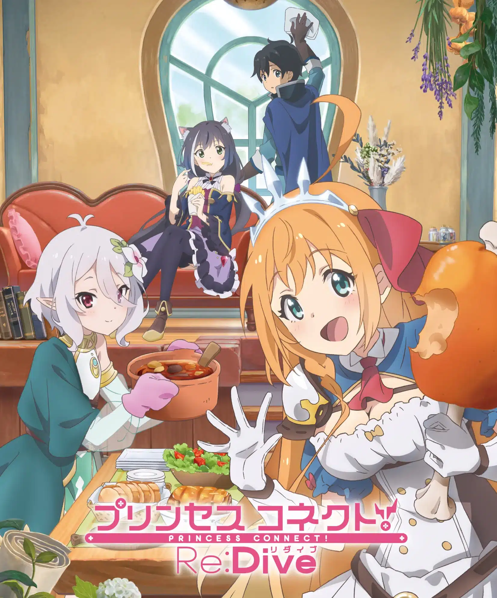 El anime Princess Connect! Re:Dive cuenta con la siguiente descripción: En el continente de Astraea, un hombre cae del cielo, sin más recuerdos que su nombre, Yuuki. Una elfa llamada Kokkoro lo encuentra y se presenta como su guía en el mundo que están a punto de atravesar. Con la ayuda de Kokkoro, Yuuki aprende cómo funciona este mundo, desde la lucha contra los monstruos hasta el manejo de la moneda.