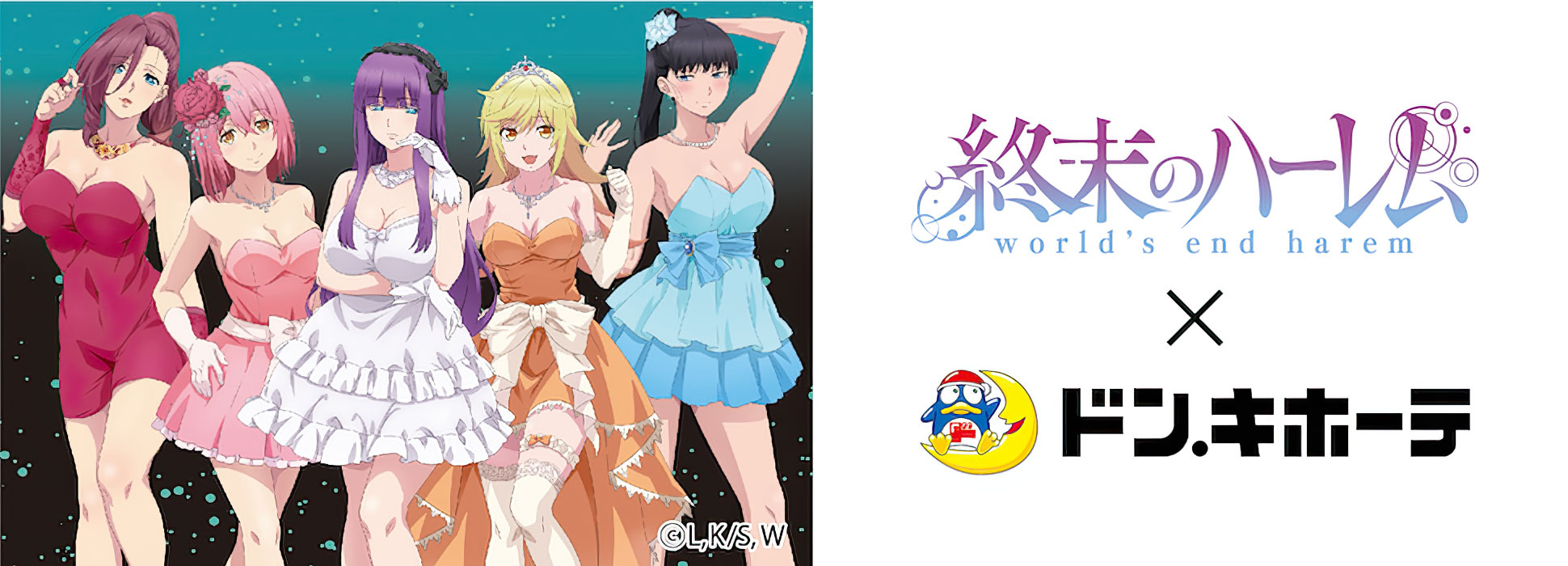 En el sitio web oficial de la compañía Don Quijote, se presentó una colaboración con el anime Shuumatsu no Harem (World’s End Harem) en el que consistirá en la producción de diferentes productos inspirados en los personajes Mira Suou, Akane Ryuuzouji, Rena Kitayama, Karen Kamiya y Akira Toudou.