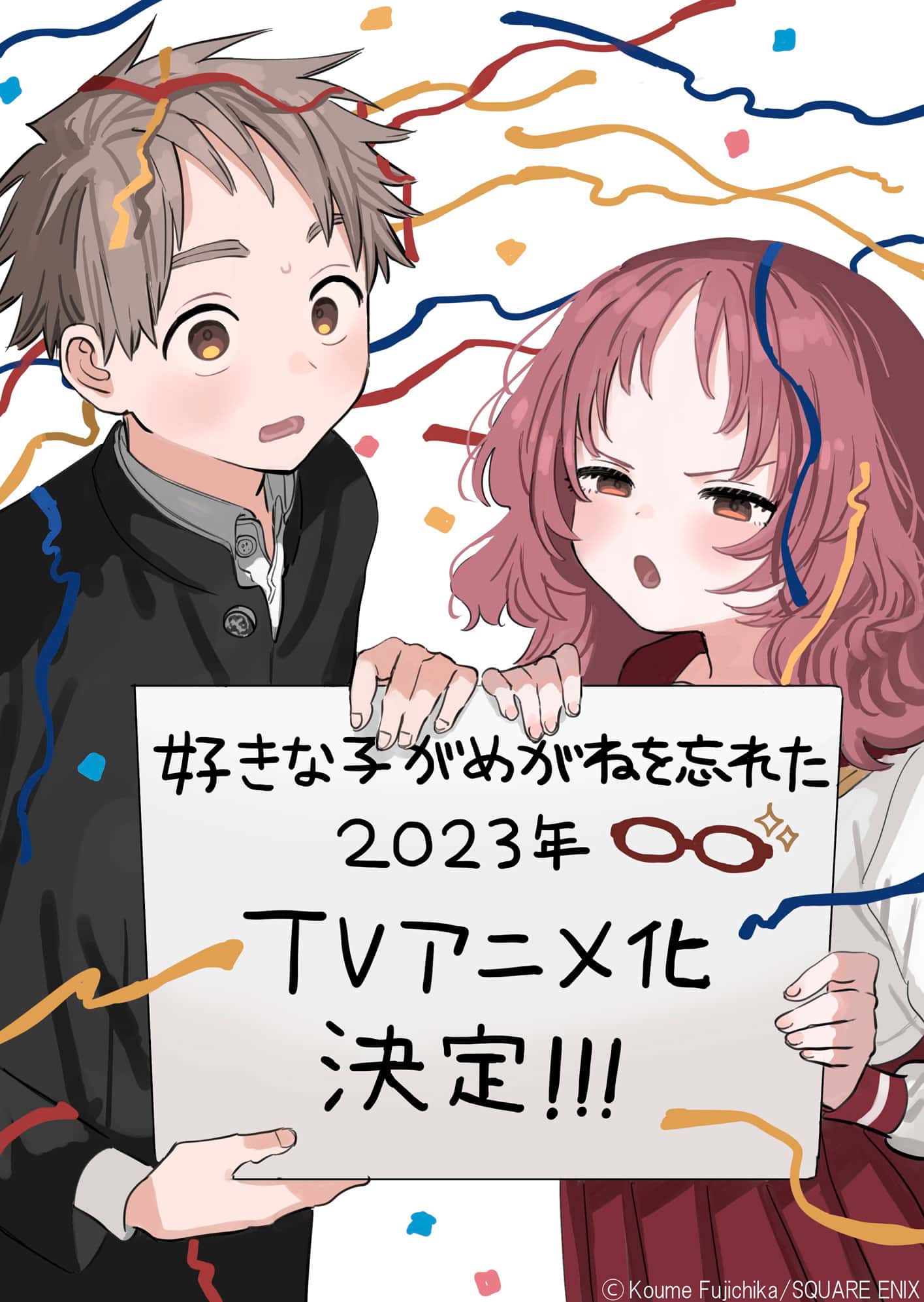 Un reporte realizado por la editorial Square Enix anunció que el manga Slice of Life y comedia romántica «Suki na Ko ga Megane wo Wasureta» (The Girl I Like Forgot Her Glasses) contará con una adaptación a serie de anime, la cual está programada para emitirse en Japón en el transcurso de este año. Además, para conmemorar esta genial noticia, Koume Fujichika (autor del manga) compartió una ilustración especial protagonizada por los personajes Kaede Komura y Ai Mie.