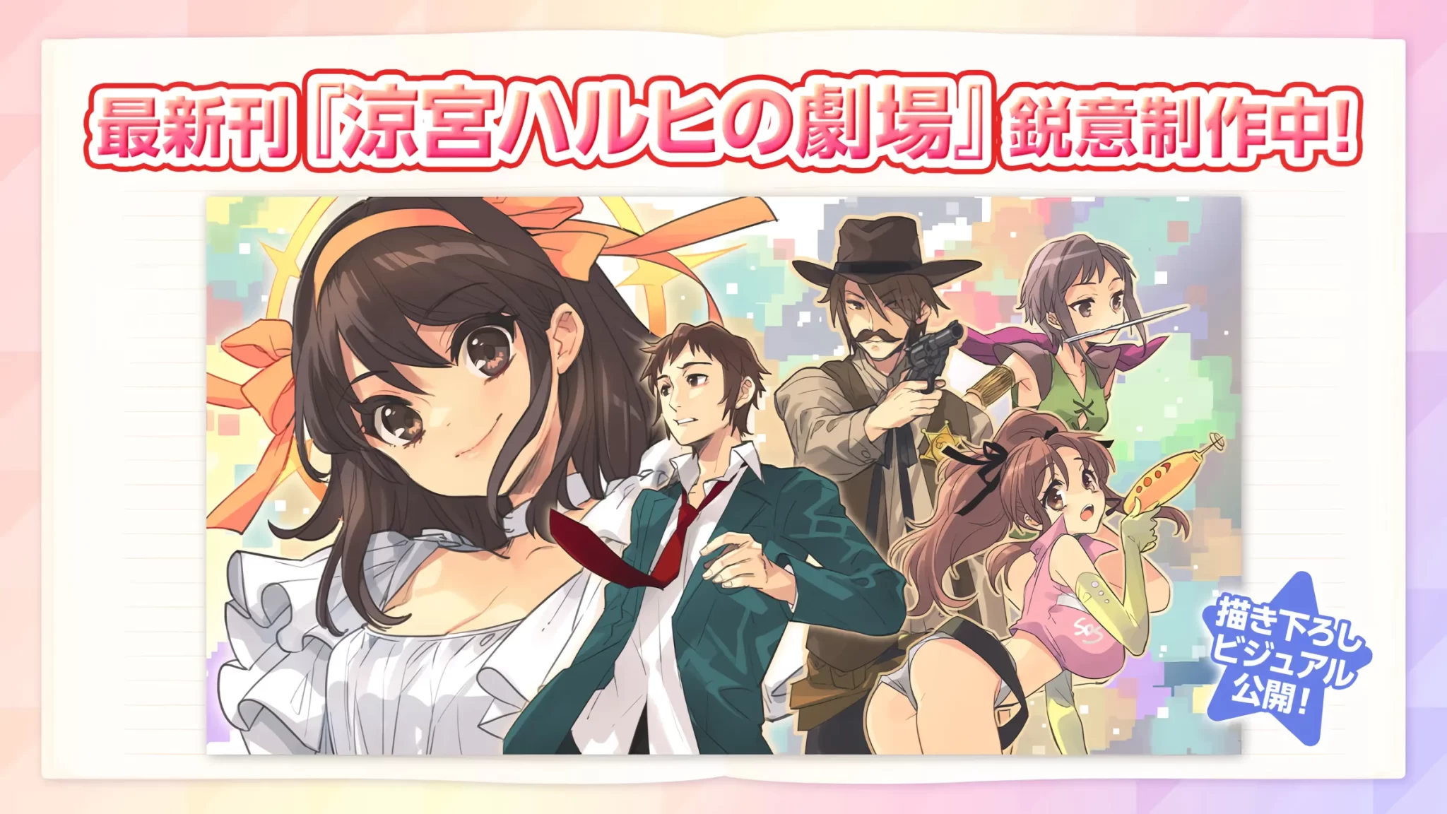 En el evento Sneaker Bunko 35th Anniversary FESTA!, la novela ligera Suzumiya Haruhi no Yuuutsu confirmó su regreso después de más de 2 años desde el lanzamiento de su volumen #12, titulado «Suzumiya Haruhi no Chokkan«.