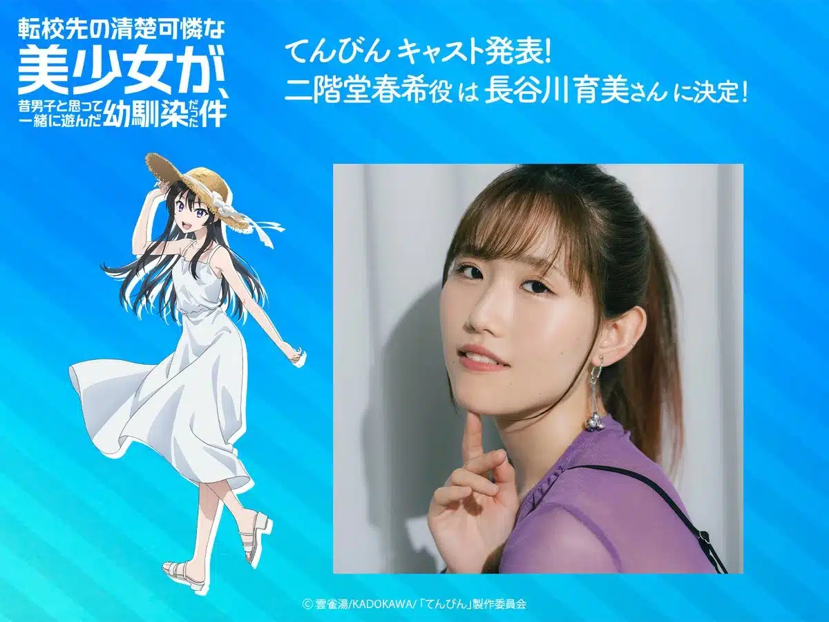 Pero eso no es todo, ya que los medios oficiales del anime Tenkou-saki no Seiso Karen na Bishoujo ga, Mukashi Danshi to Omotte Issho ni Asonda Osananajimi Datta Ken han presentado a la primera integrante del elenco de voz.