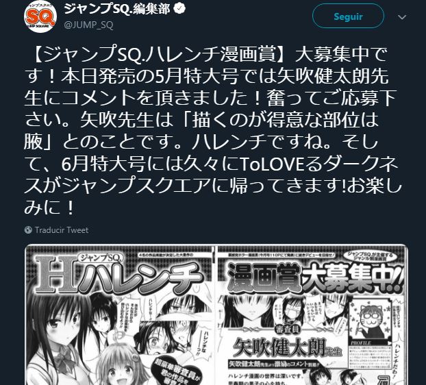 La revista Jump SQ de manera sorpresiva en su ultimo numero publicado ha revelado que el manga To Love-Ru tendrá un nuevo capitulo especial.