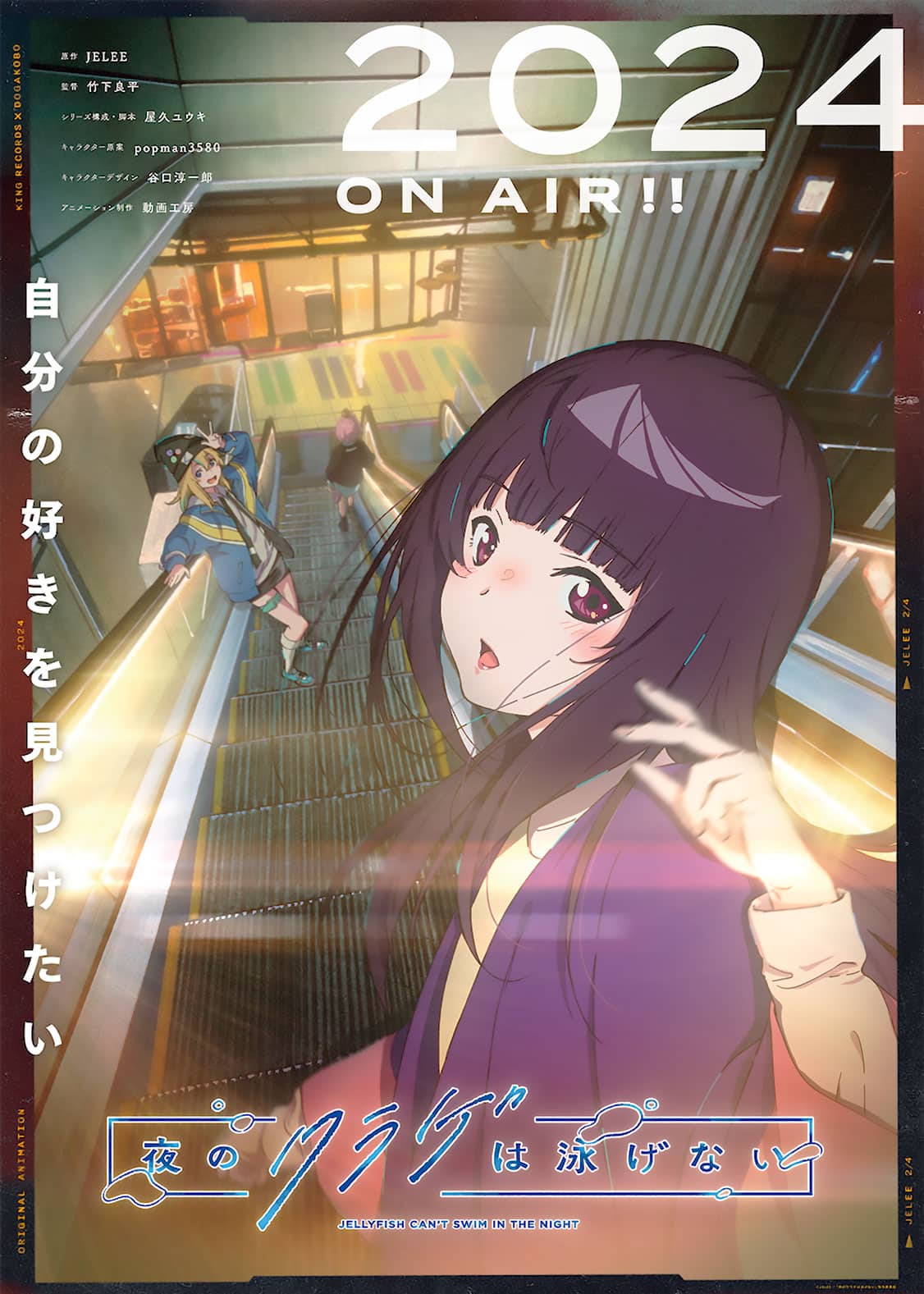 Como se ha presentado en el vídeo teaser, el sitio web oficial del anime Yoru no Kurage wa Oyogenai ha compartido la nueva imagen visual de la serie. Algo que hay que mencionar es que el anime Yoru no Kurage wa Oyogenai está programado para estrenarse en Japón en el transcurso del año 2024 y este conmemora el 50 aniversario del estudio de animación Doga Kobo.