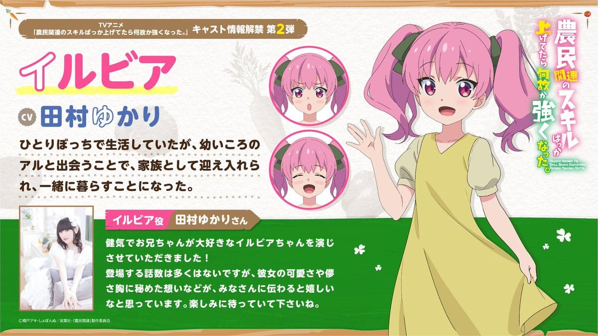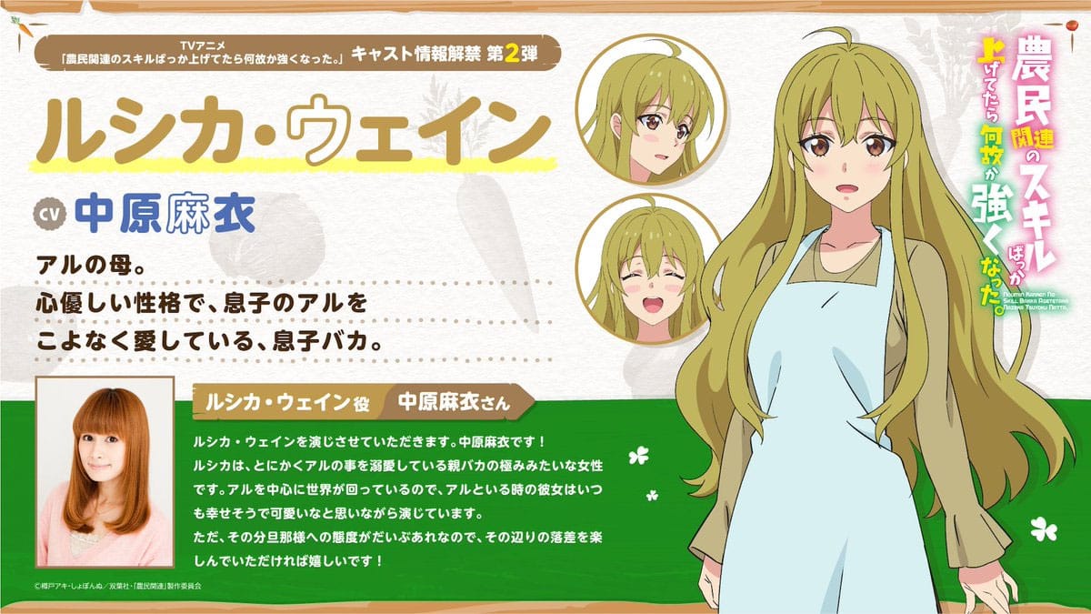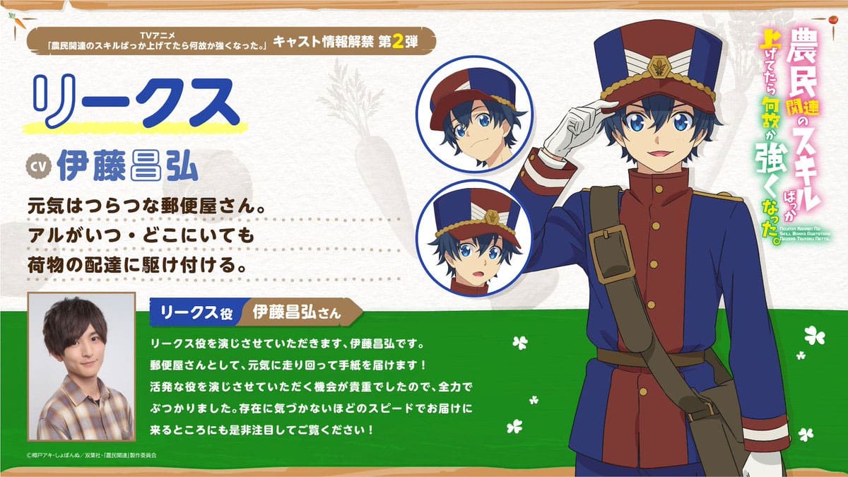 Pero eso no es todo, ya que en el sitio web oficial del anime Noumin Kanren no Skill Bakka Agetetara Nazeka Tsuyoku Natta presentó a los nuevos miembros del elenco de voz.