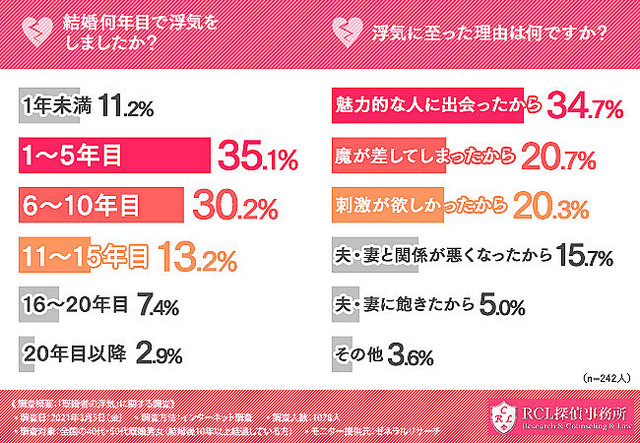 El pasado 21 de mayo, RCL publicó los resultados de una encuesta sobre «el engaño entre las parejas casadas». La encuesta se realizó por Internet el 5 de marzo, dirigida a 1.078 hombres y mujeres casados de entre 40 y 50 años de todo el país que llevan más de 10 años casados. Los resultados de la encuesta son los siguientes.