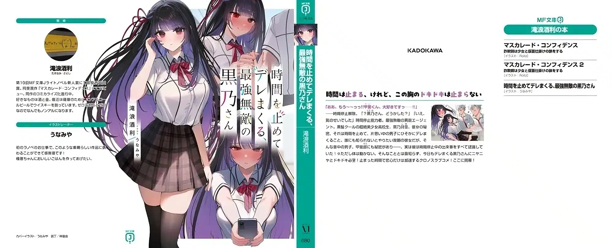Kadokawa anunció recientemente el lanzamiento de Jikan wo Tomete Deremakuru, Saikyou Muteki no Kurono-san, una novela ligera que promete una mezcla única de comedia, romance y lo que parece ser poderes sobrenaturales. La historia sigue a Kurono Shia, una fría y hermosa chica de cabello negro que posee la extraordinaria habilidad de detener el tiempo, sin embargo, detrás de su apariencia invencible, Kurono esconde un dulce secreto: puede el detener el tiempo, que utiliza para derretirse de amor por Kai, el chico que le gusta en secreto, lo que Kurono desconoce es que Kai, aunque incapaz de moverse, está plenamente consciente de todo lo que sucede mientras el tiempo está detenido.