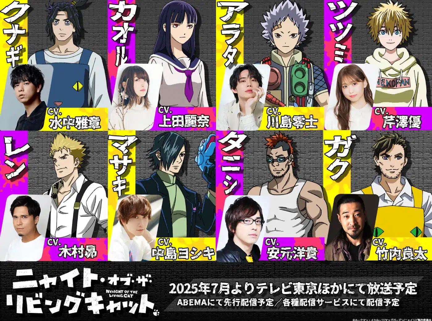 De manera adicional, el sitio web oficial del anime Nyaight of the Living Cat ha presentado a los primeros integrantes del elenco de voz que participarán en la serie.