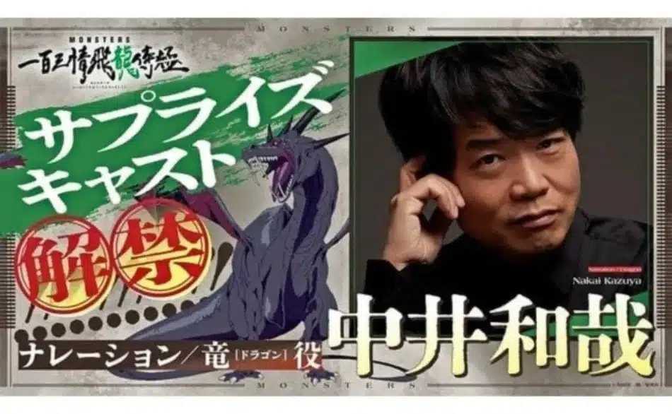 Justo el dรญa de su esperado estreno, a travรฉs del sitio oficial de Monsters: El infierno del Dragรณn, dio un anuncio sorpresa, pues revelaron que el actor de voz que da vida a Zoro, Kazuya Nakai, se unรญa al elenco como el narrador de la historia, ademรกs de tambiรฉn darle voz al Dragรณn. Esto sin duda ha emocionado a los fans, pues como algunos sabrรกn, Ryuma el protagonista, es antepasado de Roronoa Zoro, por lo que la participaciรณn de Nakai lo hace aรบn mรกs especial.