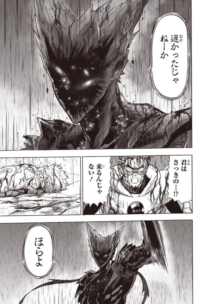Tal y como vimos en el capรญtulo 165; Garou comenzรณ un enfrentamiento frenรฉtico con Saitama, el cual termino involucrando a Genos y perdiรณ la vida en manos del villano. En un inicio se apreciaba a Satima con su tan caracterรญstica despreocupaciรณn, debido a que no atacaba en serio a Genos, pero al ver que su gran compaรฑero fue destruido, rรกpidamente su expresiรณn cambio y a una de enojo.