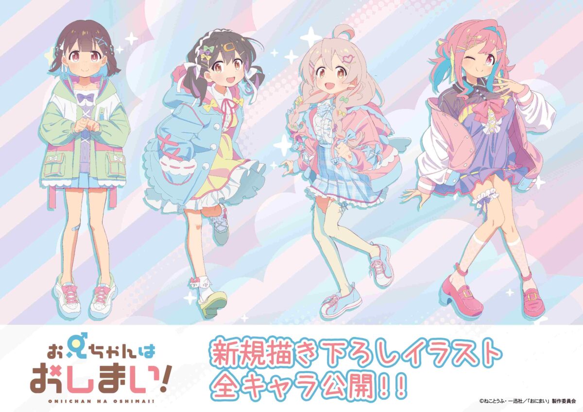 La imagen oficial muestra a las queridas protagonistas de Onimai luciendo un encantador estilo conocido como «Yumekawa Fashion«. Este enfoque de moda onírico se caracteriza por su paleta de colores pastel, elementos de cuento de hadas y detalles fantásticos.