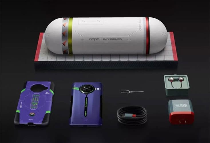 El telรฉfono viene empaquetado en una cรกpsula e incluye extras como un estuche completamente morado con verde, la herramienta SIM Spear of Longinus y perifรฉricos de carga con temรกtica NERV. Tambiรฉn se incluye un cargador de carta ultra rรกpida de 65 W.