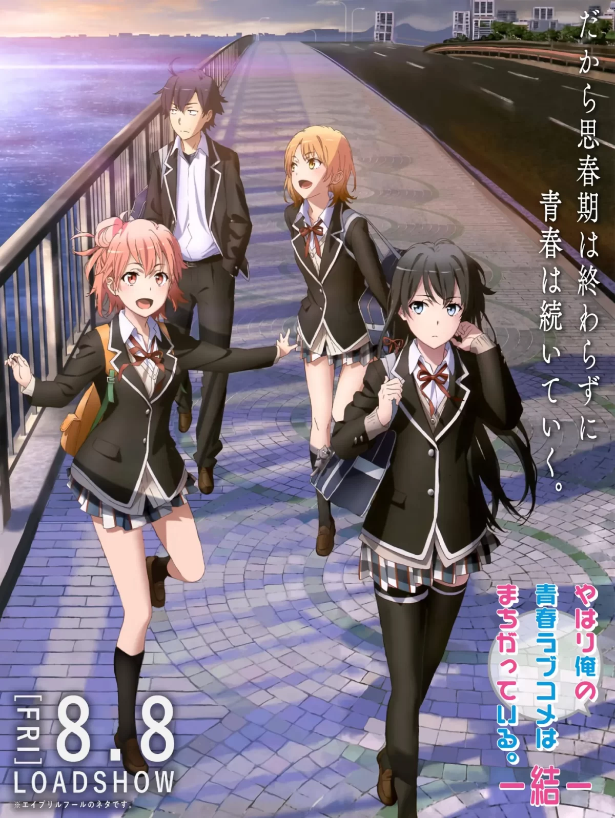 Esta noticia tomó por sorpresa a los fanáticos de Oregairu y es que luego de los proyectos conmemorativos por el décimo aniversario de la serie, esta es la primera vez que se habla directamente de una nueva producción sobre la franquicia. Adicionalmente, se ha presentado una imagen visual para este nuevo proyecto animado del anime Oregairu, el cual indica que se estrenará en Japón el próximo 8 de agosto de este año.