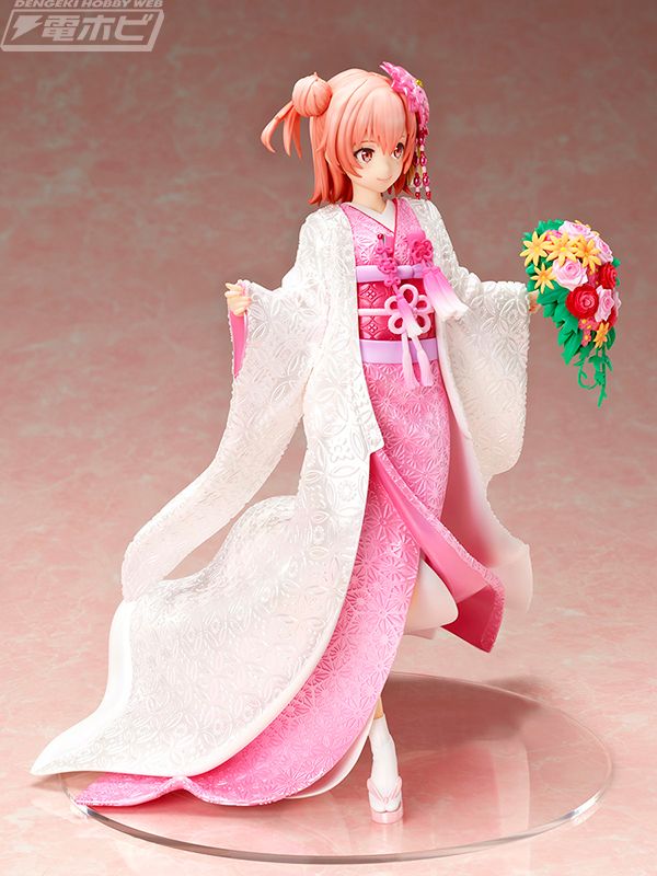 La figura resalta por mostrarnos a Yui luciendo un hermoso kimono de color rosa y un velo de color blanco, mientras que en una mano sostiene un ramo de flores. El vestido usado por Yui en esta nueva figura tiene una peculiaridad, y es que se trata de un Shiromuku, un vestido de novia japonés.