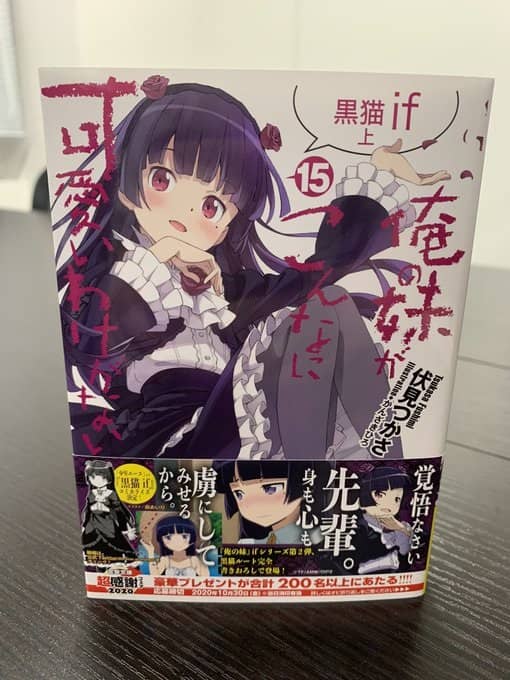 La cuenta de Twitter oficial de las novelas ligeras Ore no Imouto ga Konna ni Kawaii Wake ga Na (Oreimo) y Eromanga Sensei reveló las primeras imágenes de cómo es físicamente el volumen 15, y el primero de la ruta «Kuroneko if«, de la serie de novelas ligeras Oreimo.