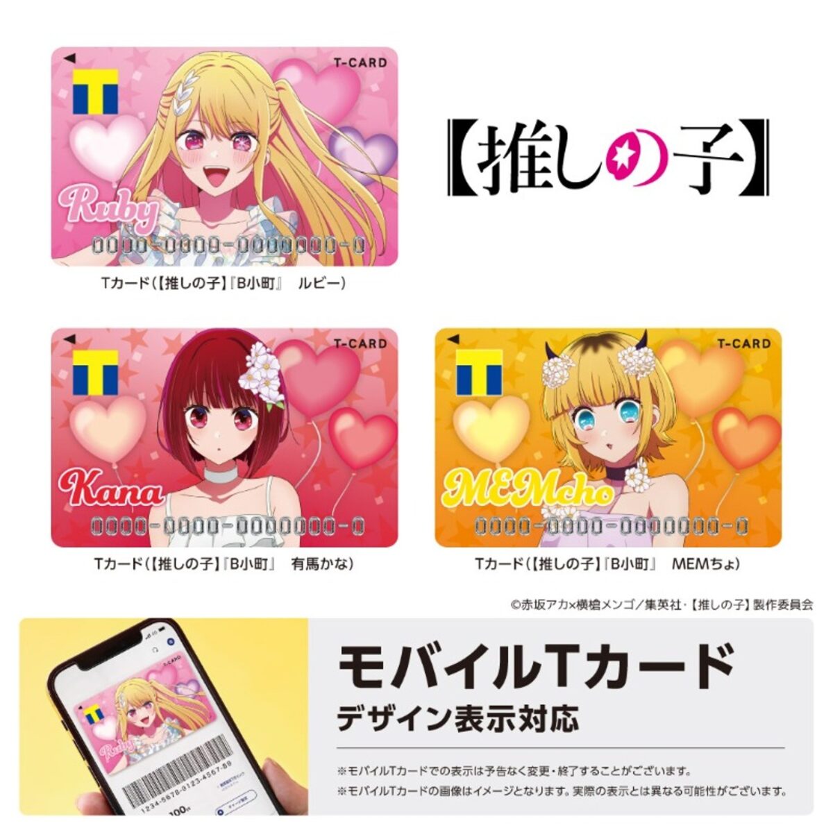 Esta colaboración tan esperada entre las chicas de Oshi no Ko y las tarjetas T-CARD tiene como protagonistas a las talentosas chicas del grupo B-Komachi: Ruby, Kana y Memcho, quienes lucen radiantes y elegantes vestidos blancos en esta serie de tarjetas exclusivas. Las tarjetas T-CARD son un medio de pago ampliamente utilizado en comercios de todo Japón, así como en transacciones en línea. Básicamente, cada 1 yen equivale a un punto al presentar la tarjeta T, lo que lo convierte en una opción