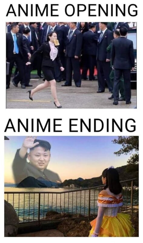 Y como no podรญa faltar, en las รบltimas horas se ha viralizado un video creado por fans en el que vemos escenas de Corea de Norte y la hermana de Kim Jong-un al sonido del opening de Evangelion, como si de un opening de anime se tratara.