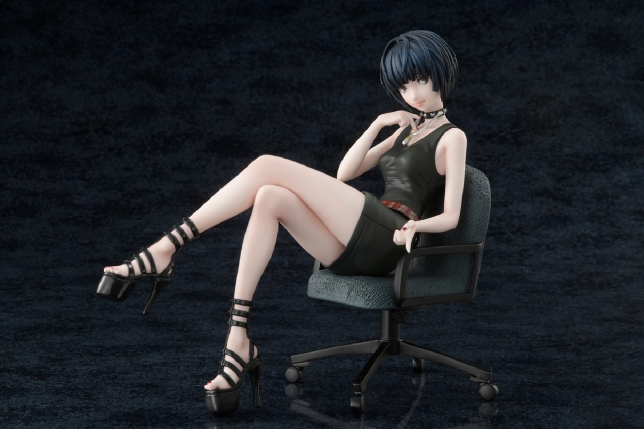 La figura es de escala 1/7, emulando en su acabado el cel shading propio de Persona 5. Su tamaño ronda los 15 centímetros, y cuesta con una pose que recuerda a la que tiene en el momento que se nos presenta la interfaz de su tienda, manteniéndose sentada cómodamente en la silla de su clínica.