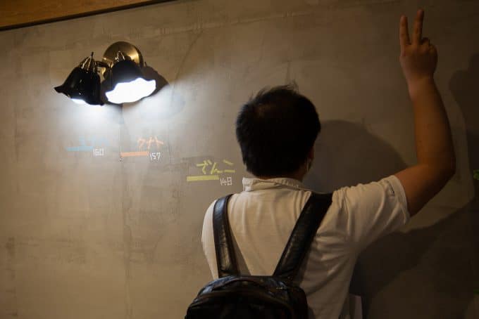 También hay marcas en la pared que muestran la altura de Kunato, Mizuhara y Denko.