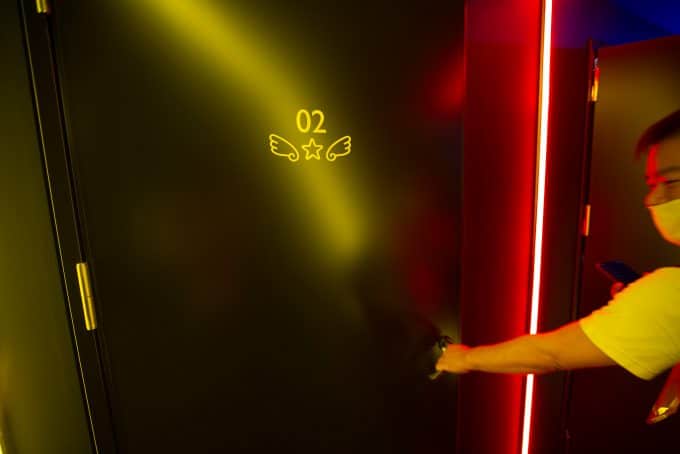 Luego, colocas el código QR de la tarjeta de membresía sobre el terminal de registro en la parte posterior de la recepción y registras tu nombre. La gran sorpresa es que en Rhythm☆StellA, te llaman por tu nombre en la sala privada! Así que se puede registrar el nombre con el que deseas ser llamado. No dudé en registrarme bajo mi verdadero nombre.