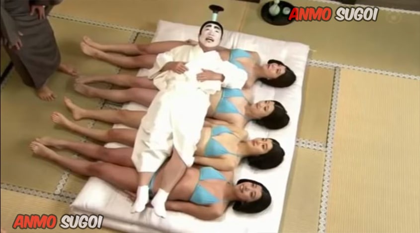 En el sketch,ย cuatro mujeres en bikini azul se tumbaron para formar el ยซshiki butonยป o el futรณnย .ย Bakatono luego se extiende sobre ellos, mientras que su criado exclama con entusasmo ยซยกOh, eso es genial!ยป.ย Luego,ย cuatro mujeres en bikini rosa se acostaron sobre รฉl, para formar el ยซkake butonยปย , o manta, cuando Bakatono dice: ยซEso es, asรญ es el caminoยป.