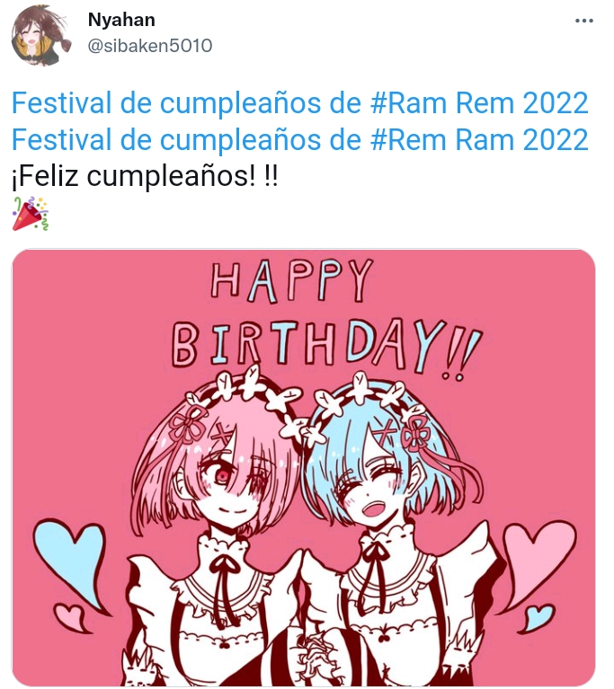 Los fans de las serie y en si de las gemelas no se quedaron atrás en la celebración y compartieron un sin fin de imágenes, dibujos, fan art’s, cosplays, y mucho más en Twitter para celebrar en cumpleaños de Ram y Rem.