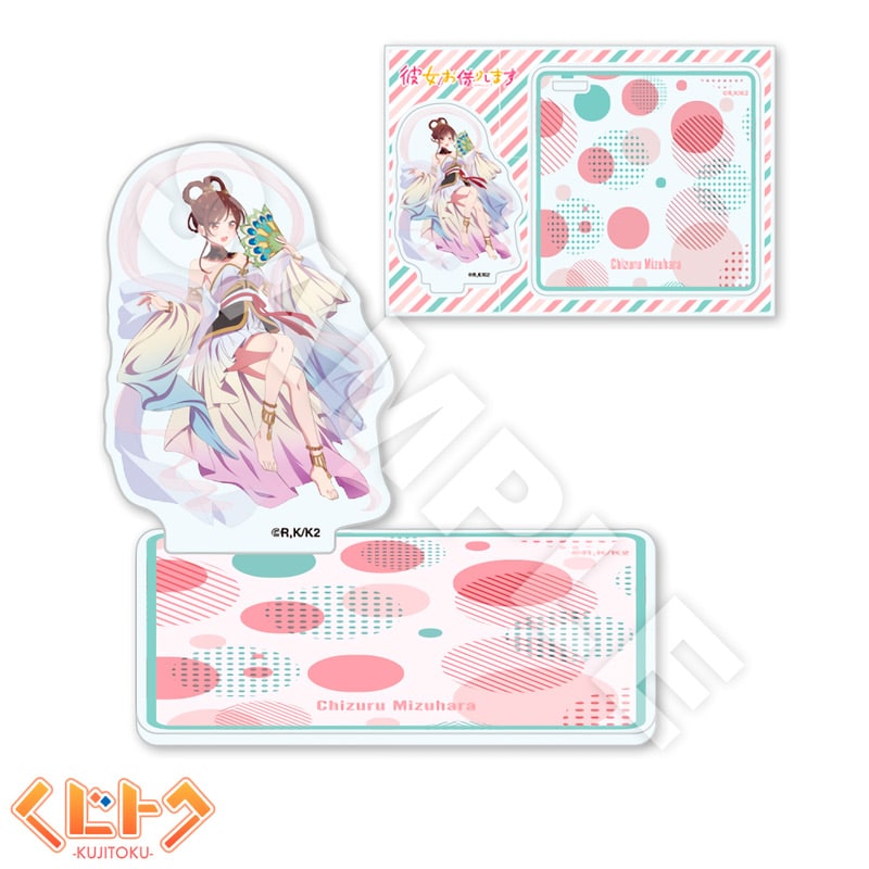 Luciendo atuendos inspirados en hermosas y reconocidas personalidades antiguas de diferentes partes del mundo, las figuras de acrílico de Chizuru Mizuhara (Tennyo), Mami Nanami (Cleopatra), Ruka Sarashina (Yang Guifei) y Sumi Sakurasawa (Ono no Komachi) tendrán una altura aproximada de 20 cm y su probabilidad de ganar los productos será del 2%.