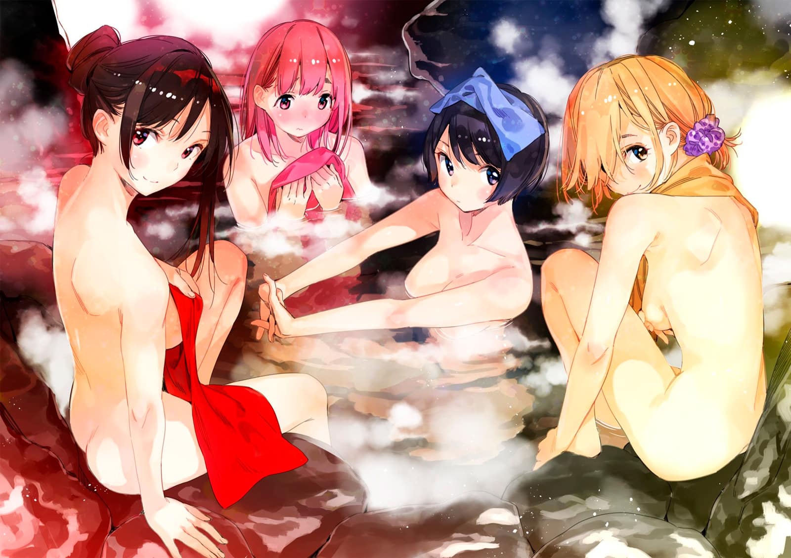 Para esta ocasión, el creador del manga Rent-a-Girlfriend ha dejado sorprendidos a sus seguidores al presentar esta fascinante ilustración de las chicas principales de su obra. Además, en esta «obra de arte» se muestra a Chizuru, Ruka, Mami y Sumi visitando un onsen juntas, algo nada habitual dentro de la historia del manga, para compartir un momento cercano en el cálido baño de aguas termales.