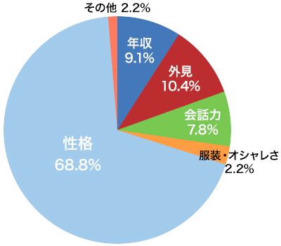 Según esta encuesta el factor más importante para un novio ideal sin duda es la personalidad, teniendo un 68.8% del total de respuestas. Asimismo las encuestadas dieron algunas características específicas como ser cariñoso, inteligente, con modales, pero la que más resalto entre todas es amable.