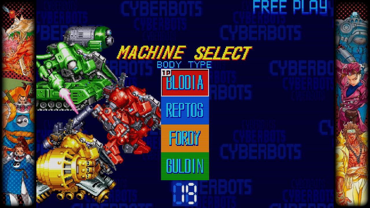 En Cyberbots tenemos la posibilidad de elegir a un mecha para pelear y al piloto que lo controlará. En realidad lo único que importa para los estilos de combate son los mechas, no importa que piloto elijas, ninguno importa realmente para el gameplay. Escoger entre un piloto u otro solamente afecta en la historia que veremos a través del modo arcade.