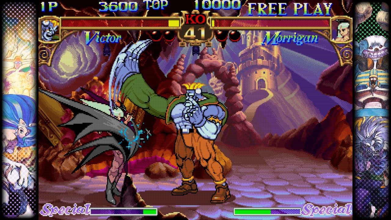 Empezando por los primeros tres títulos, estamos ante el origen de una trilogía de juegos de pelea enfocados al combate frenético, con una temática de terror occidental para sus luchadores y escenarios. Al ya ser una saga de culto que ha quedado poco a poco en el olvido, muchos probablemente no estaban enterados, pero la popular súcubo de Capcom, Morrigan, nació como parte de esta franquicia.