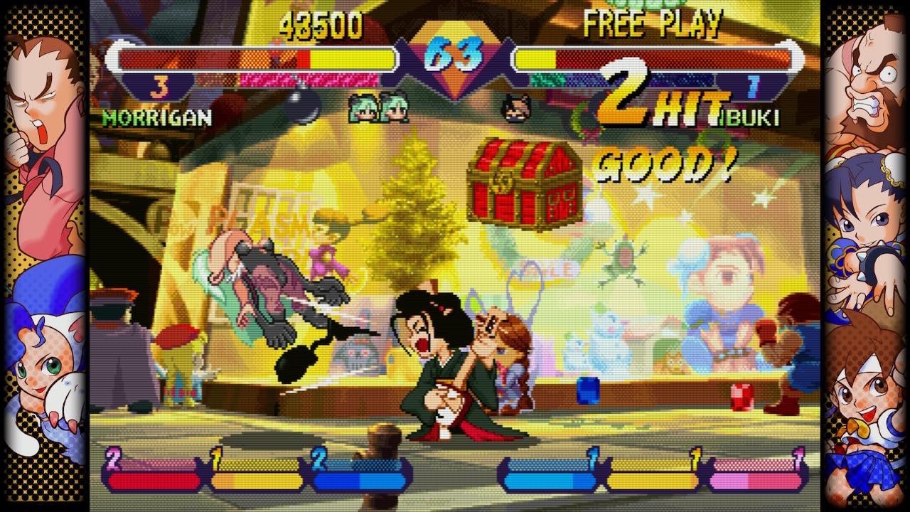 Para finalizar con los juegos incluidos en la Capcom Fighting Collection, tenemos al carismático Super Gem Fighter Minimix. Este título de peleas tan curioso de Capcom está enfocado a un gameplay menos “técnico” a lo que estamos acostumbrados, y nos ofrece una experiencia aún más arcade y más ligera de lo que normalmente vemos en los juegos de pelea.