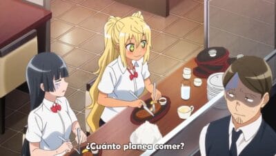 Ya pasado el entrenamiento y la sensual (dulce, exquisita, sabrosa) ducha viendo a una Hibiki con un cuerpo mas tonificado (grrrrr, guau guau), pasamos al «bar de proteína», precedido por Machio y donde nos sueltan otro tip de gimnasio, esta vez relacionado al «Golden Time», el tiempo efectivo para tomar proteína después de entrenar para su mejor eficiencia. Y como no puede faltar «la gordita interior» de Hibiki, decide ir a agregar «mas proteina». ¿Que tal un bistec de 900kcal? La cara de Akemi y el camarero lo dicen todo.