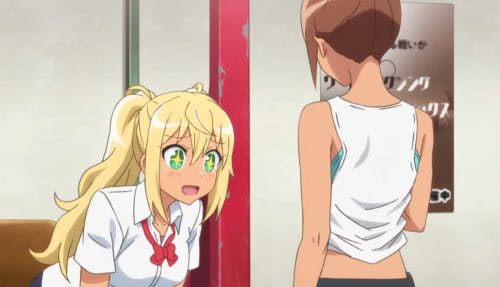 Ya para la segunda mitad del anime por fin!, por fin nos presentan a la amiga de Hibiki, Ayaka Uehara. Esa amiga a la que le tienen que hacer un pedestal. Pasando rápido la historia de que se conocieron en secundaria, estamos ante una cinefila fanática de una saga de acción titulada «Los siete comandos» y la cual comparte afición con Hibiki. Al presentar sus estadísticas lo primero que llamo la atención fue su bajisimo nivel de grasa corporal, y eso que tiene pecho y no se le veía tan fuerte… hasta que la vemos «trabajando». Ella es hija de un ex campeon mundial de boxeo y se encarga de ayudar en el gimnasio de boxeo que fundó su padre junto a su hermana. Y bueno, nos presentan a su hermana y ya tenemos a la ¿waifu senpai? Mejor no…