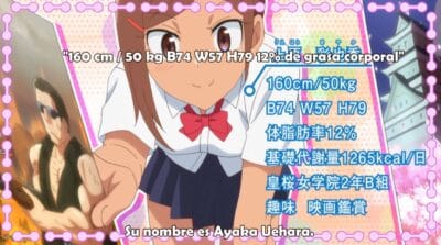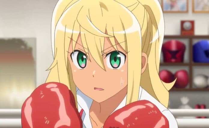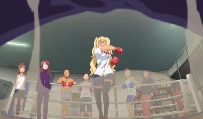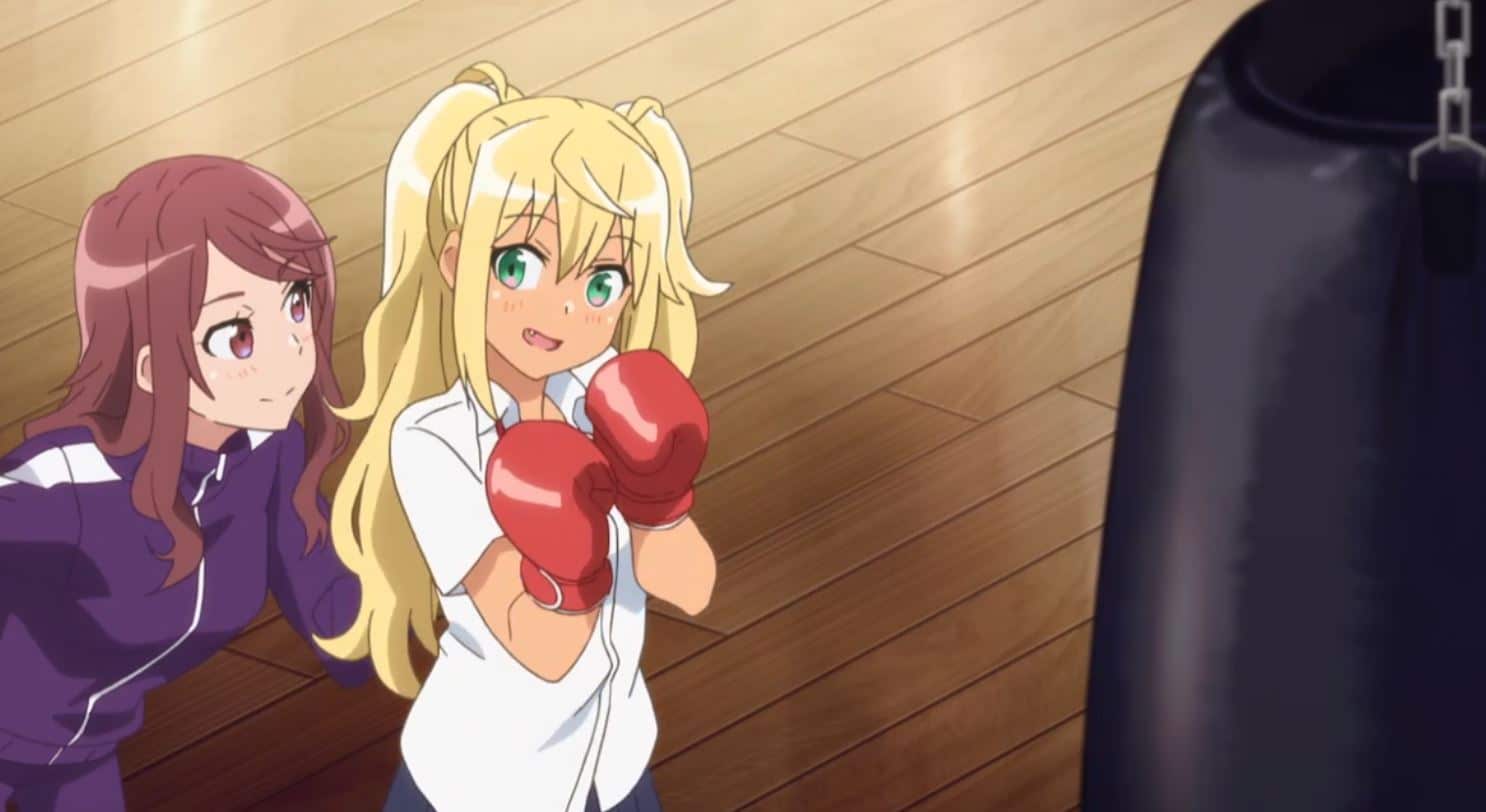 Ya para la segunda mitad del anime por fin!, por fin nos presentan a la amiga de Hibiki, Ayaka Uehara. Esa amiga a la que le tienen que hacer un pedestal. Pasando rápido la historia de que se conocieron en secundaria, estamos ante una cinefila fanática de una saga de acción titulada «Los siete comandos» y la cual comparte afición con Hibiki. Al presentar sus estadísticas lo primero que llamo la atención fue su bajisimo nivel de grasa corporal, y eso que tiene pecho y no se le veía tan fuerte… hasta que la vemos «trabajando». Ella es hija de un ex campeon mundial de boxeo y se encarga de ayudar en el gimnasio de boxeo que fundó su padre junto a su hermana. Y bueno, nos presentan a su hermana y ya tenemos a la ¿waifu senpai? Mejor no…