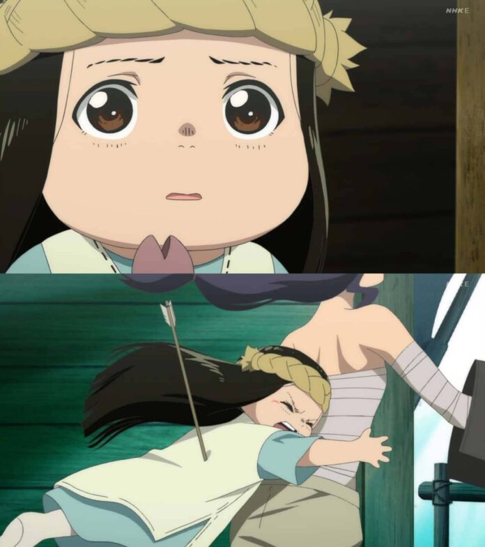 Al ver tal escena, March no sabe qué hacer y al darse cuenta de que están a punto de dispararle con una flecha a su amada “Nee-Nee” decide protegerla recibiendo el proyectil.