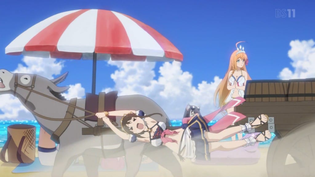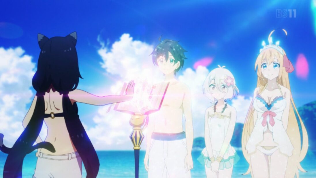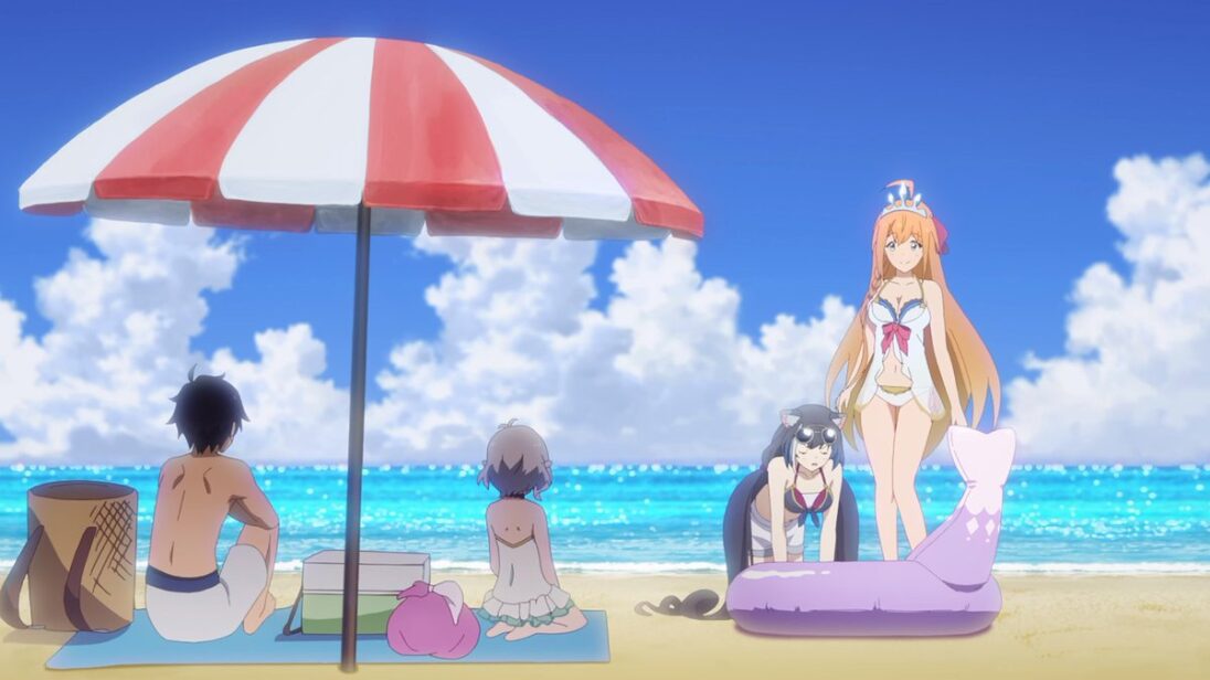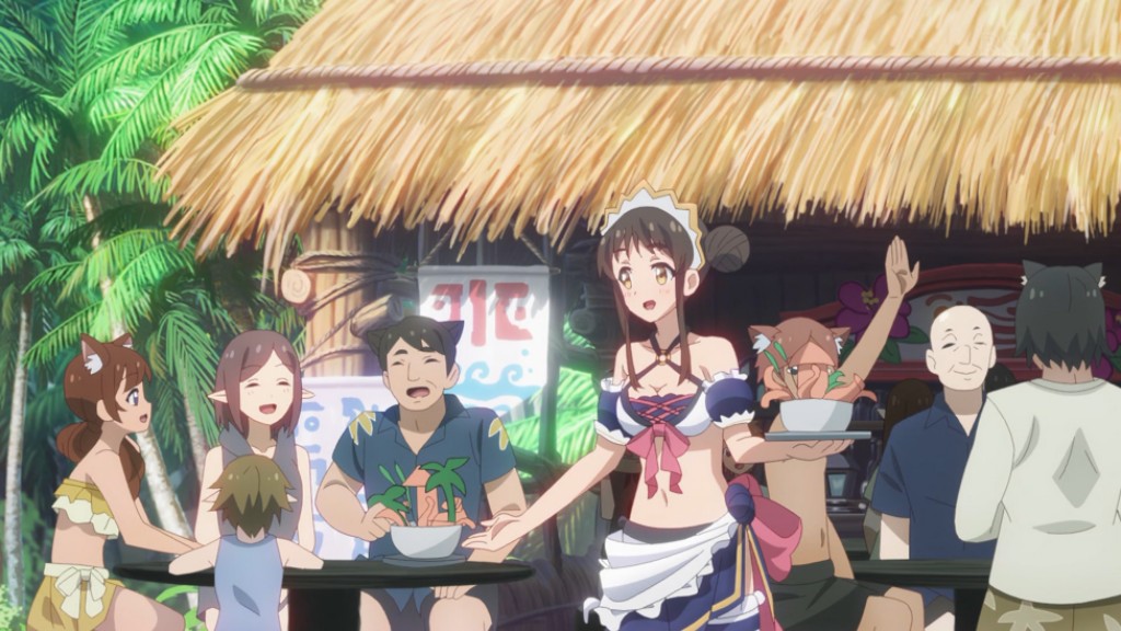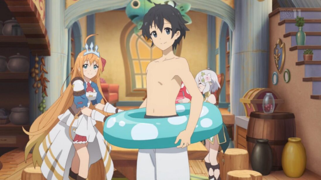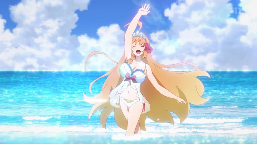 Despues vemos a Kyaru terminando el trabajo en los campos de arroz para que mas tarde al llegar a la casa del gremio se de cuenta de que todos se estaban alistando para viajar a la playa. Antes de partir Kokkoro le muestra su traje de baño a Yuuki para ver si le quedaba bien, a estas alturas sabemos que el héroe de la historia es una persona de muy pocas palabras asique rápidamente aprueba el atuendo de la persona a su cargo.
