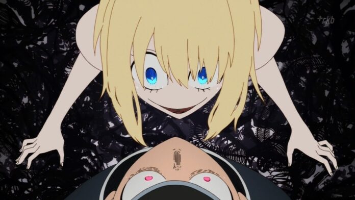 El capitán de la cuarta invita a Shinra a su oficina para hablar más tranquilos, aunque rápidamente esta calma es extinguida debido a dos cosas, la primera, el capitán inmediatamente le pide a Shinra que lo queme, a mi parecer de una manera bastante masoquista y por otro lado un Adolla Link se manifiesta y por alguna razón es bastante parecido a Iris.