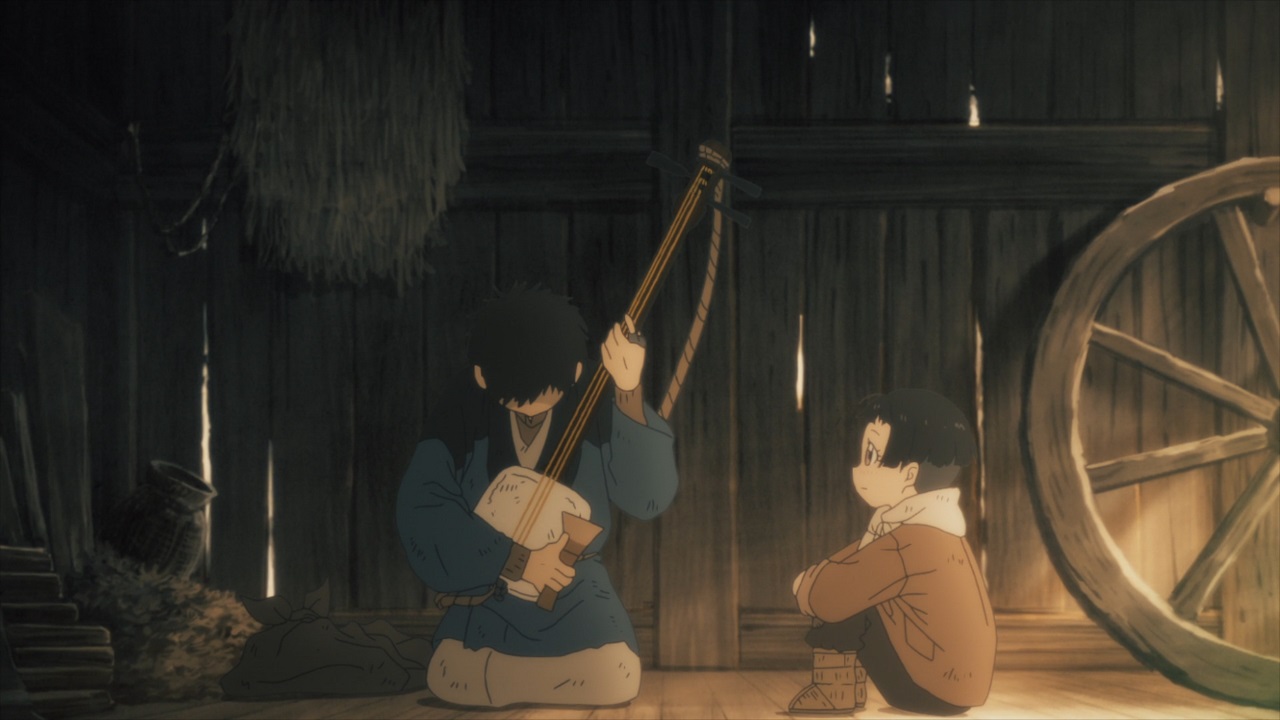 El apartado tรฉcnico sigue trabajando bien, pero el resto de la serie en realidad se mantiene sin grandes cambios. Por eso en este momento me voy a centrar en una escena del sexto capitulo, que es cuando se cuenta el origen del tsugaru-shamisen.