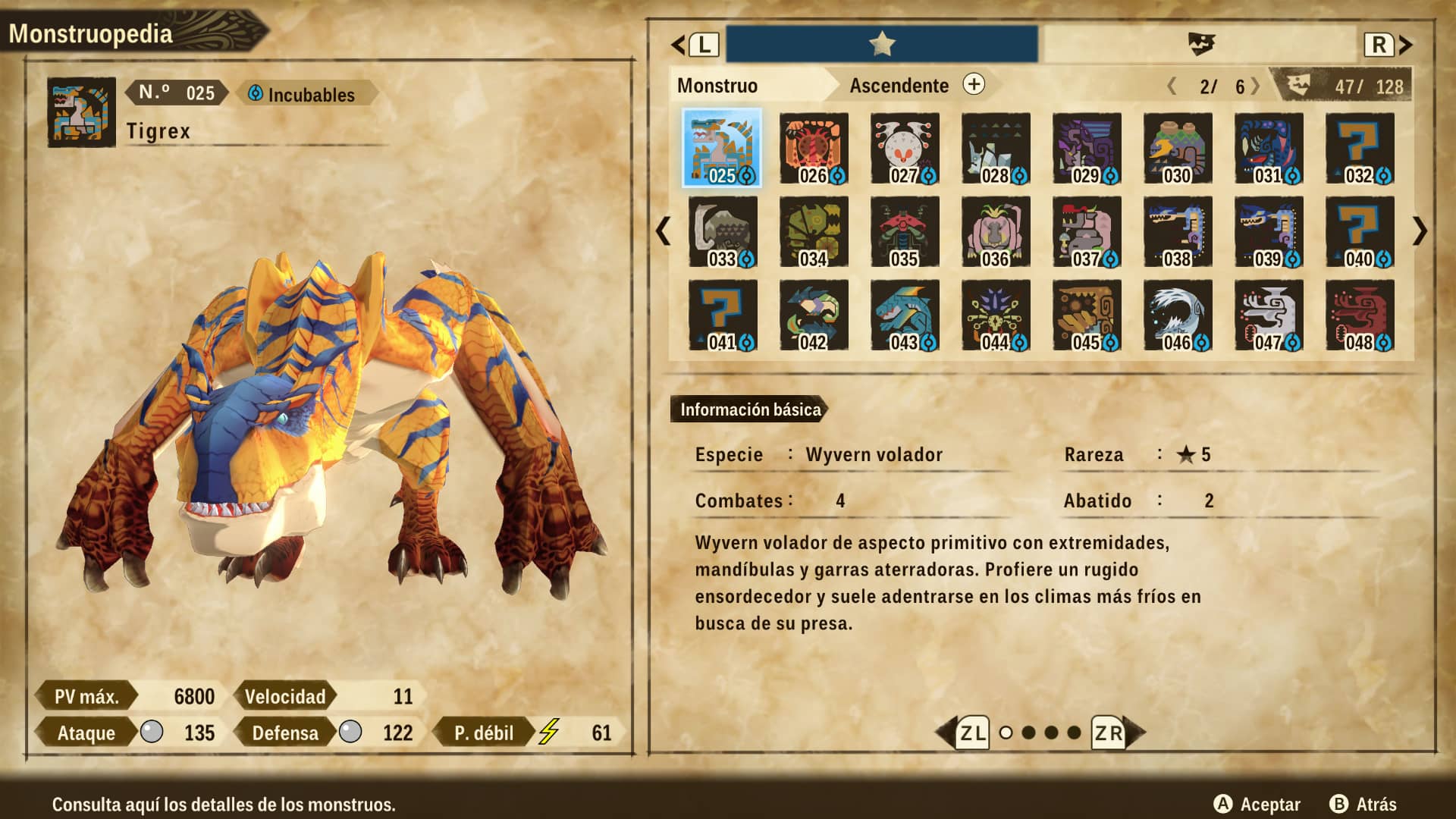 Adicional a esto podremos consultar información general, así como estadísticas y otros datos acerca de los monstruos en la Monstruopedia, un tipo de pokedex con información precisa de cada monstie del juego.