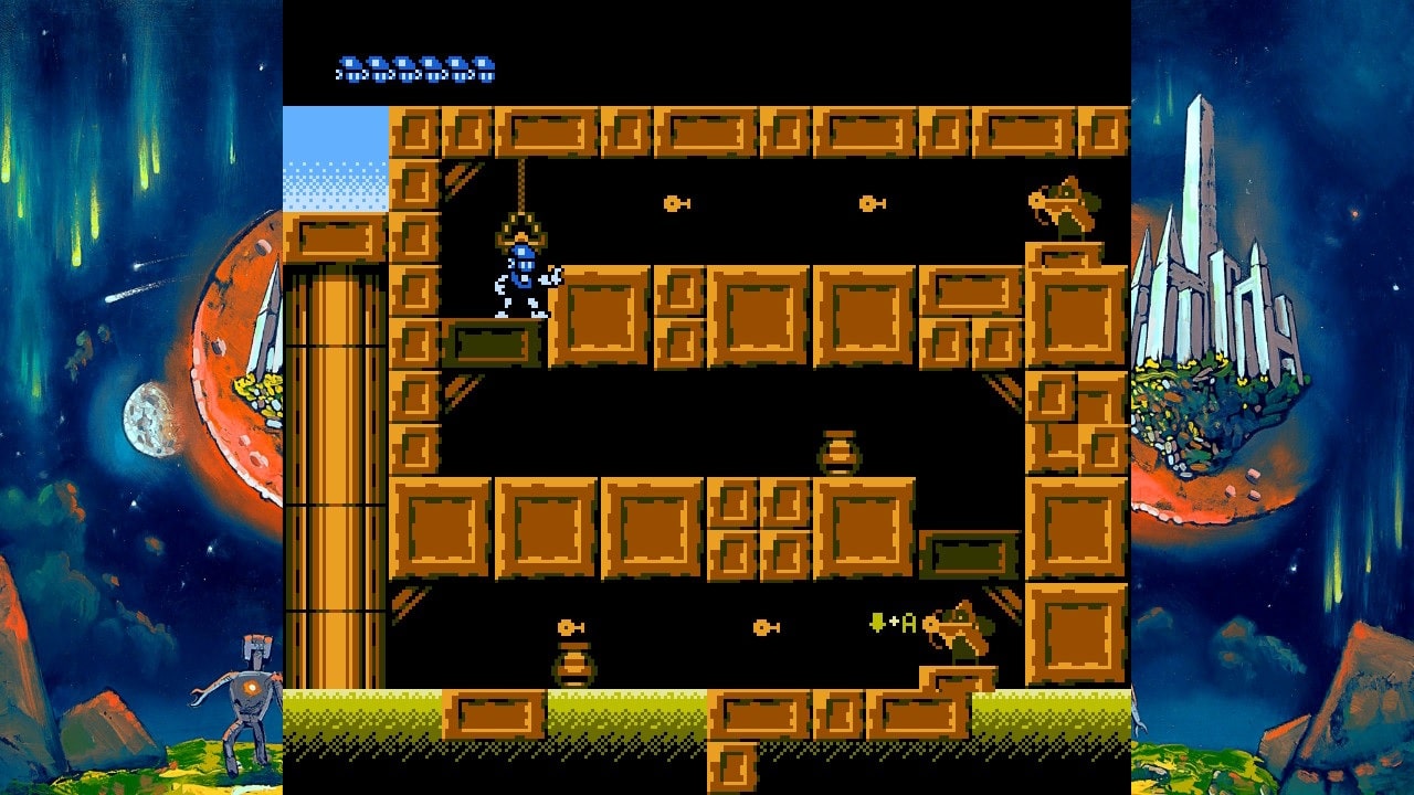 El juego cuenta, además de más de 10 jefes, 5 poderes especiales a modo de power up para nuestro robot, aparecerán en cajas voladoras que deberemos disparar para abrir y, si morimos, las perderemos al instante. Visualmente, no destacan demasiado, y no todas son tan útiles, pero aportan una capa más de jugabilidad.