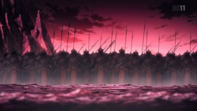 Y es precisamente esa la escena destacada del capítulo en mi opinión. Dos personajes secundarios fueron el punto de atención con su declaración, acompañada de la buena banda sonora y de la animación mientras Scheta mencionaba su pasado y lo relacionaba con el deseo de proteger a Iskahn. La combinación de estos factores más la situación de guerra y cansancio en la que se encontraban hicieron aún más bello el momento.