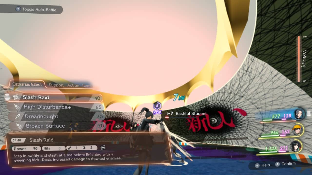 Sin embargo, debido a que este es un mundo impulsado también por la música, vale la pena mencionar que se reproducirá mucha música de fondo que ciertamente quiere el juego que la escuches. Tanto es así, X también tiene un medidor de voltaje que una vez lleno puede permitirle realizar actuaciones que mejoran las habilidades de tus personajes, esta función es llamada X-Jacking. A lo largo del juego, obtendrás nueva música que puedes asignar para que X la intérprete y obtener una variedad de beneficios entre los que puedes alternar en cualquier momento fuera de la batalla, lo que lo convierte en una buena especie de máquina de discos que puedes usar.