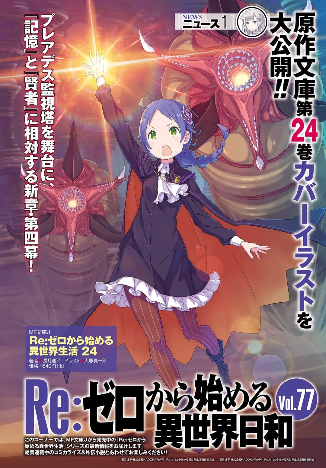 Se acaba de revelar la portada del volumen 24 de la serie de novelas Re:Zero kara Hajimeru Isekai Seikatsu. Dicho volumen saldrá a la venta en librerías de Japón el 25 de septiembre.