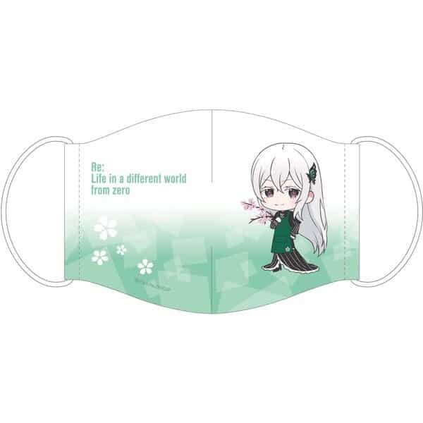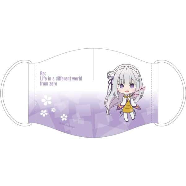 Los cubrebocas nos muestran ilustraciones chibi de los personajes Emilia, Rem, Ram y Echidna; cada una con un precio individual de 2200 yenes (20 dólares).