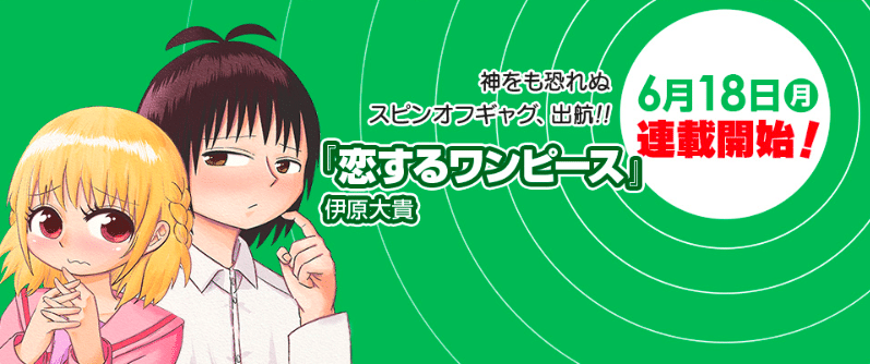 La webย Shonen Jump+ย de Shueisha ha anunciado el lanzamiento de un nuevo manga spinoff del conocidoย One Pieceย deย Eiichiro Odaย el prรณximo 18 de junio. Este nuevo spinoff llevarรก por tรญtuloย Koisuru One Piece, siendoย Daiki Iharaย quien se encargue de dibujarlo. Al igual que otros spinoff que se publican en laย Shonen Jump+, este Koisuru One Piece serรก un manga cรณmico autorizado por el propio Oda. El primer capรญtulo nos mostrarรก โla primera cita de cierta parejita en un zoolรณgico mientras buscan a Chopperโ.