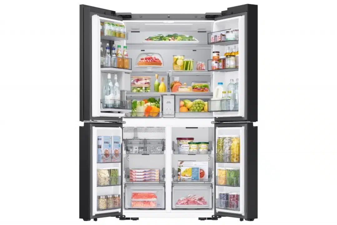 El nuevo Refrigerador Bespoke AI Home no solo conserva los alimentos, sino que se convierte en un verdadero asistente de cocina. Su pantalla LCD de 9 pulgadas, integrada con el sistema AI Home, permite consultar recetas, gestionar otros dispositivos del hogar y dar órdenes por voz con Bixby. La tecnología AI Vision Inside detecta automáticamente los productos almacenados y su fecha de caducidad, ayudando a reducir el desperdicio.