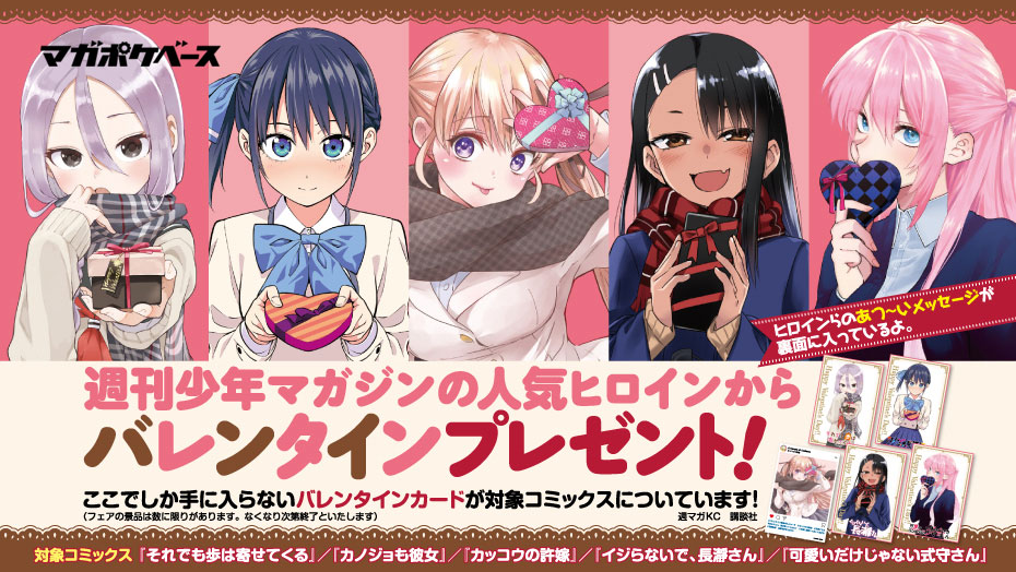El sitio web oficial de Pocket Magazine ha revelado unas tarjetas especiales en conmemoraciรณn a San Valentin, los cuales son protagonizados por las protagonistas de algunas obras de la editorial Kodansha.