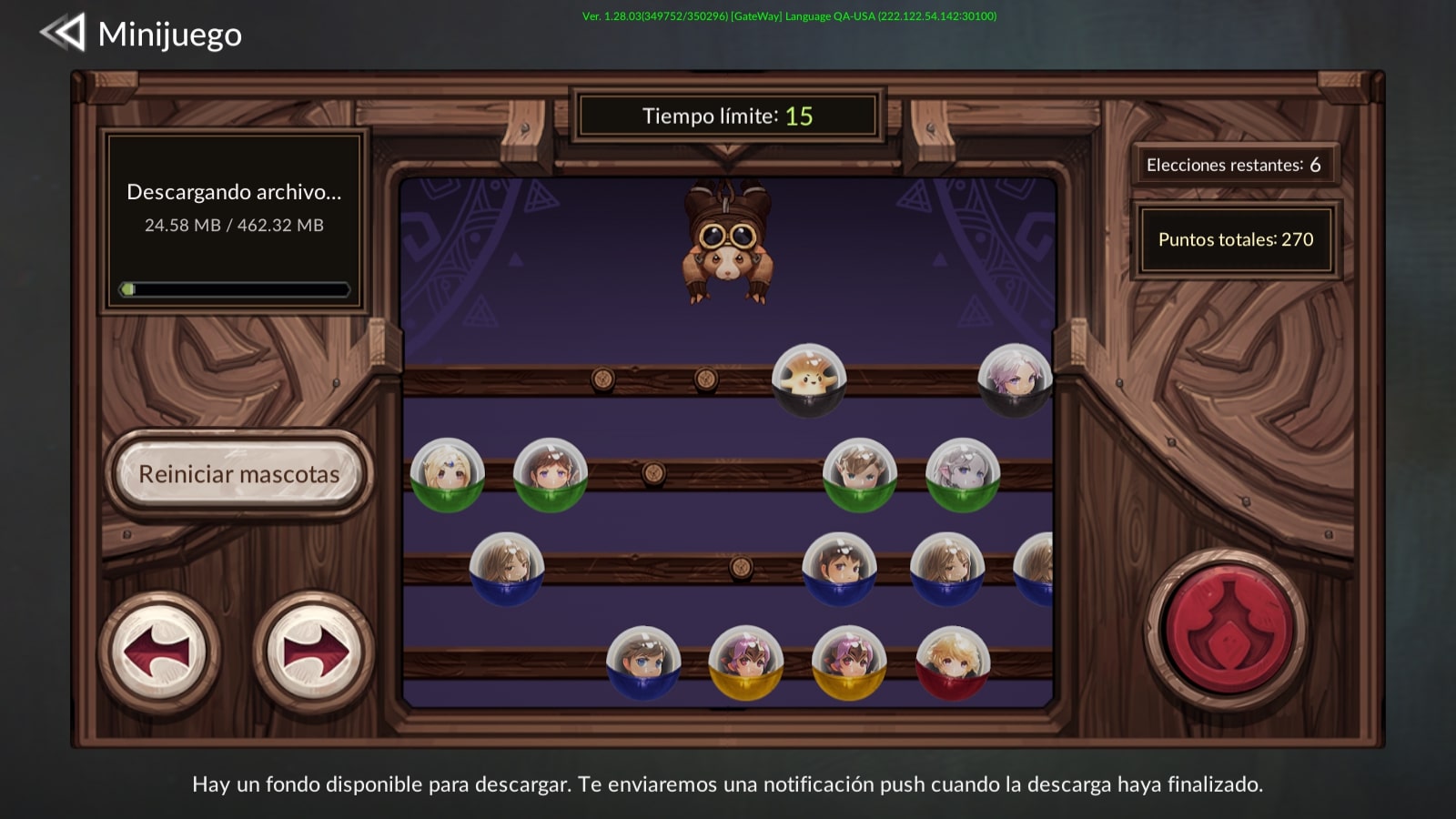 Una de mis sorpresas al momento de instalar Seven Knights 2 fue que al momento de instalar los datos adicionales me encontré con un pequeño juego gatcha que consistía en obtener la máxima cantidad de puntos al recolectar esferas que según su color valían más puntos. Una dinámica simple, pero adictiva que hará más placentera la espera por jugar el verdadero titulo.