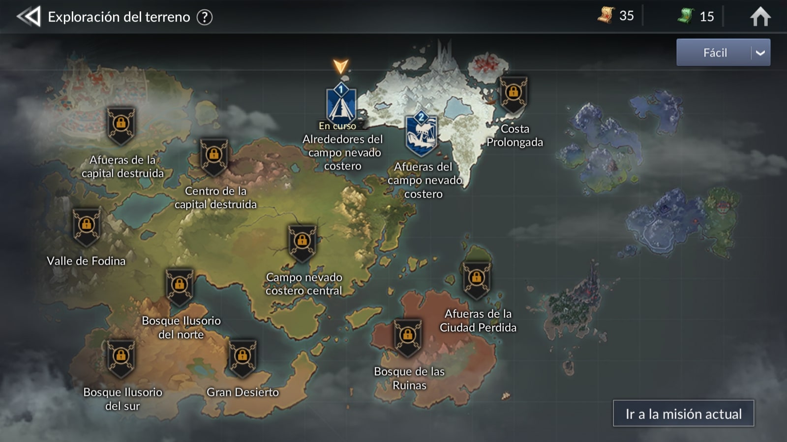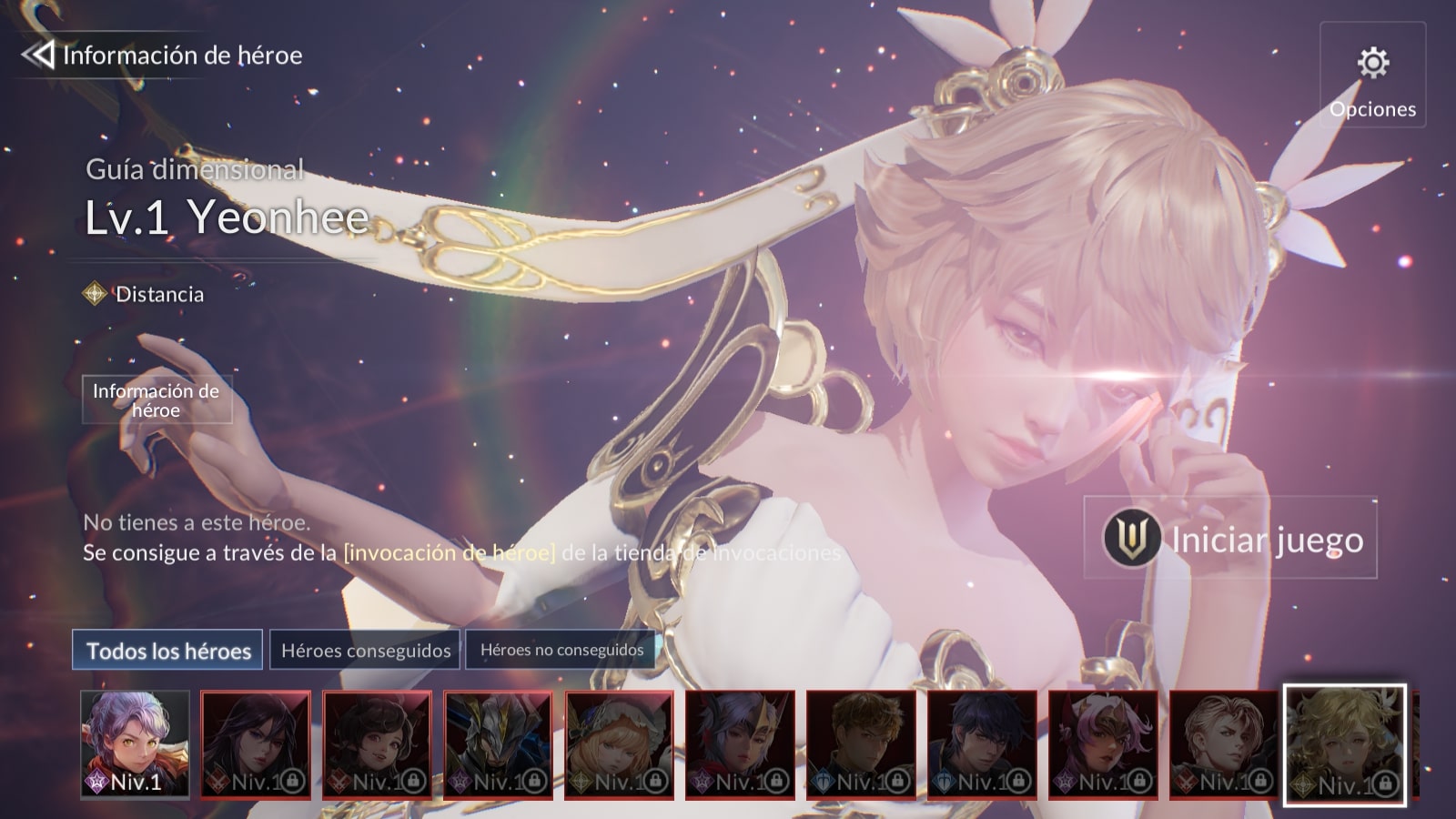 El primer paso antes de comenzar nuestra aventura es seleccionar nuestro personaje, por lo que sí es nuestra primera partida solo podremos conseguir a Leane pero conforme sigamos avanzando en el juego iremos desbloqueando más personajes por medio de invocaciones de héroe, completando capítulos o como recompensas al realizar ciertas tareas dentro del juego.
